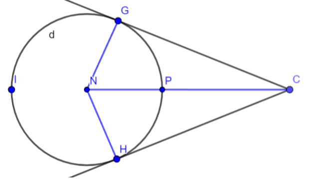 Now we have to draw an arc. Here, we need the center of the circle - coordinates of N and two angles - ∠CNG and ∠GNH. Since it is one of angle of right triangle △CNG and other angle is known,